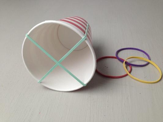 1단계: 컵 중간에 고무줄 2~3겹 감기